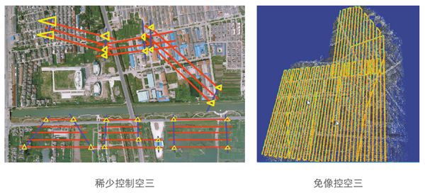 平臺不僅支持包括Bingo、PATB與全新的自有光束法平差模塊Power Adjustment等在內(nèi)的多種平差接口,同時還支持傳統(tǒng)的稀少控制空三加密(含傳統(tǒng)全野外布控),以及純GPS(高精度)的免像控平差與GPS(高精度)+ IMU(高精度)的聯(lián)合的免像控平差(相對純GPS效果更優(yōu))。